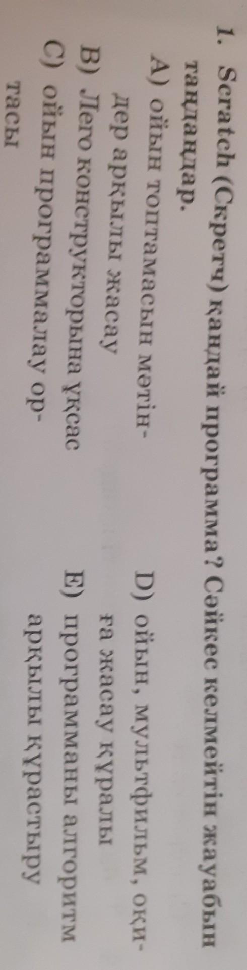 Sccrath(Скретч) қандай программа? Сәйкес келмейтін жауабын таңдаңдар​