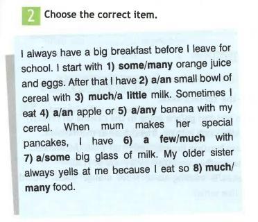 1)some 2)a 3)a little 4)an 5)a 6)much 7)a 8)many