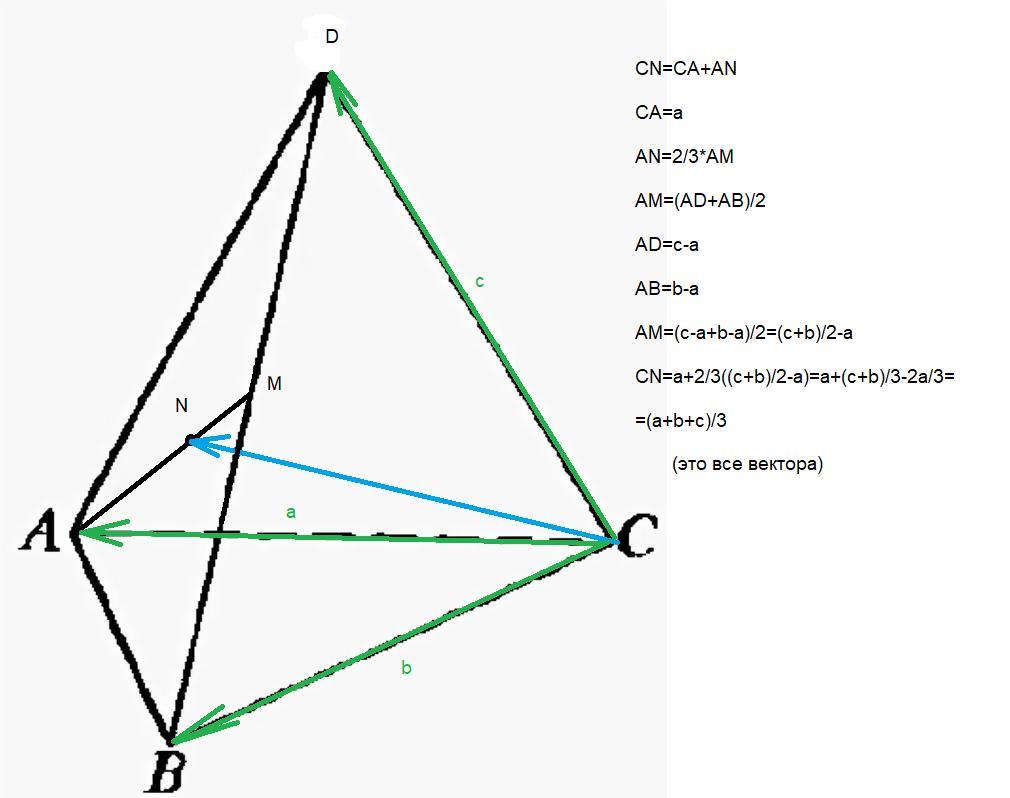 AM.Выразите вектор CNчерез векторы a=CA ,b =CB,c=CD.