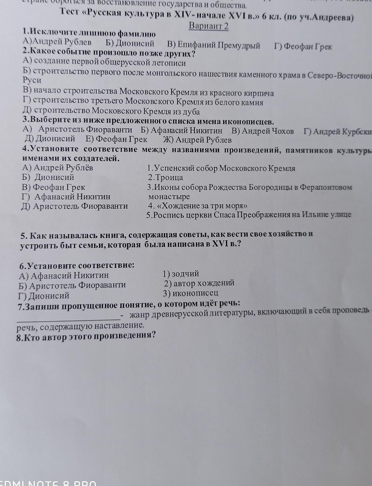 Помогите с тестом по истории 6 класс &28-29 по учебнику Андреева "культура 14-16 веков"