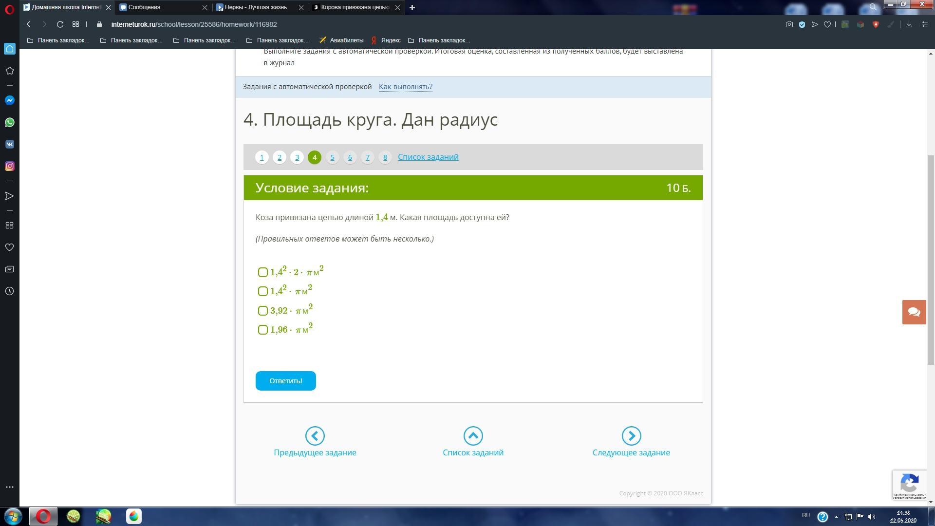 Длина цепи - радиус круга, значит площадь круга доступного козе: