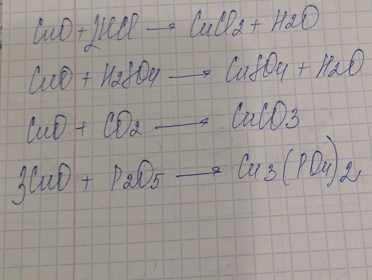 С какими из указанных веществ может реагировать СuO, напишите уравнения