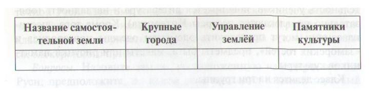 Дайте ответы на таблицу "Важнейшие земли, управляемые ветвями княжеского рода Рюриковичей, в середине XII – начале XIII века" СРОЧНА НУЖЕН ОТВЕТ