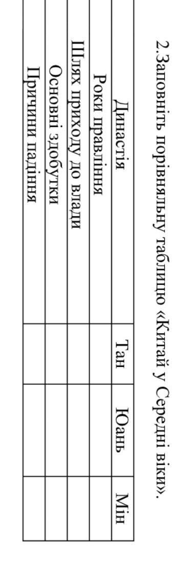 таблица китай у Середнi вiки​