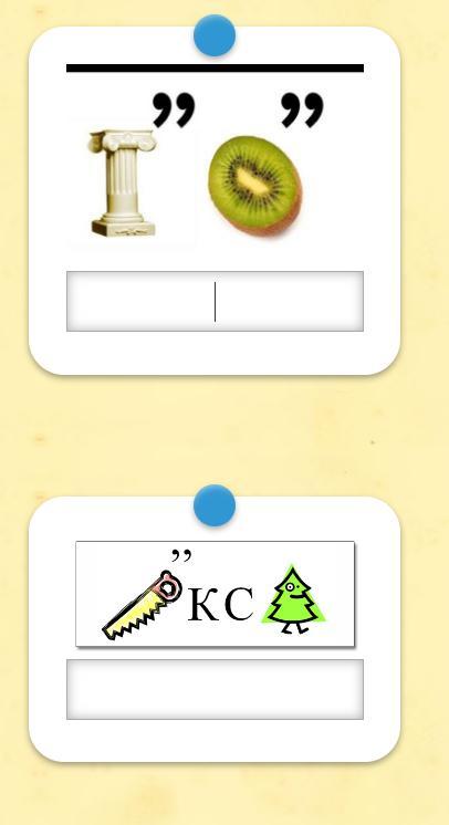"КИВИ", убираем две последние буквы (после картинки две запятые) ⇒ КИ