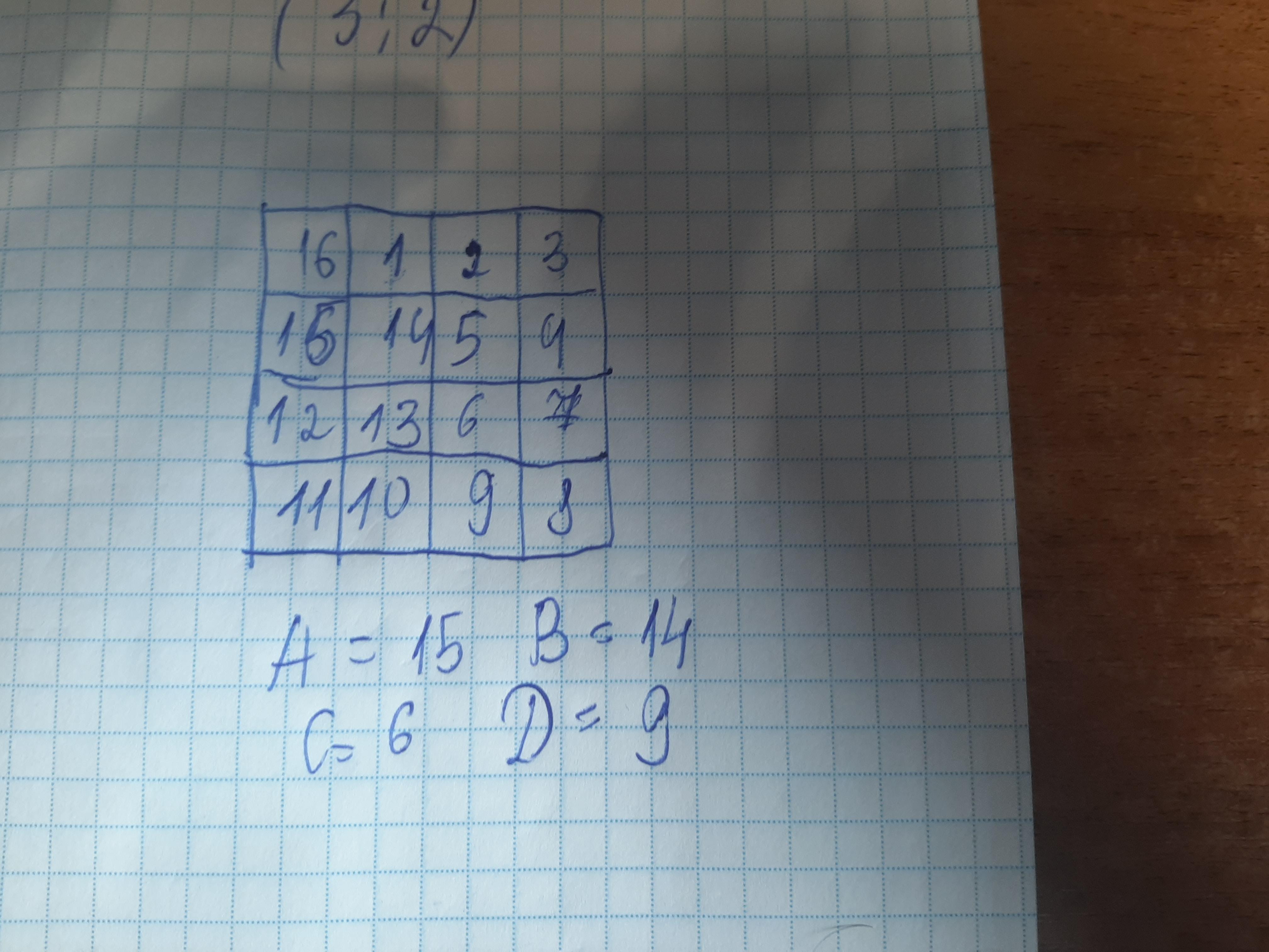 Ксюша поставила фишку в одну из клеток квадрата 4×4. Она передвигала фишку по клеткам этого квадрата, каждый раз переходя из клетки в соседнюю по стороне, и побывала в каждой клетке ровно один раз. В каждую клетку она записала номер хода, на котором фишка попадала в данную клетку (рисунок слева). Она сделала так ещё раз, но записала только 3 хода (рисунок справа). Найдите, какие числа должны стоять в отмеченных клетках.