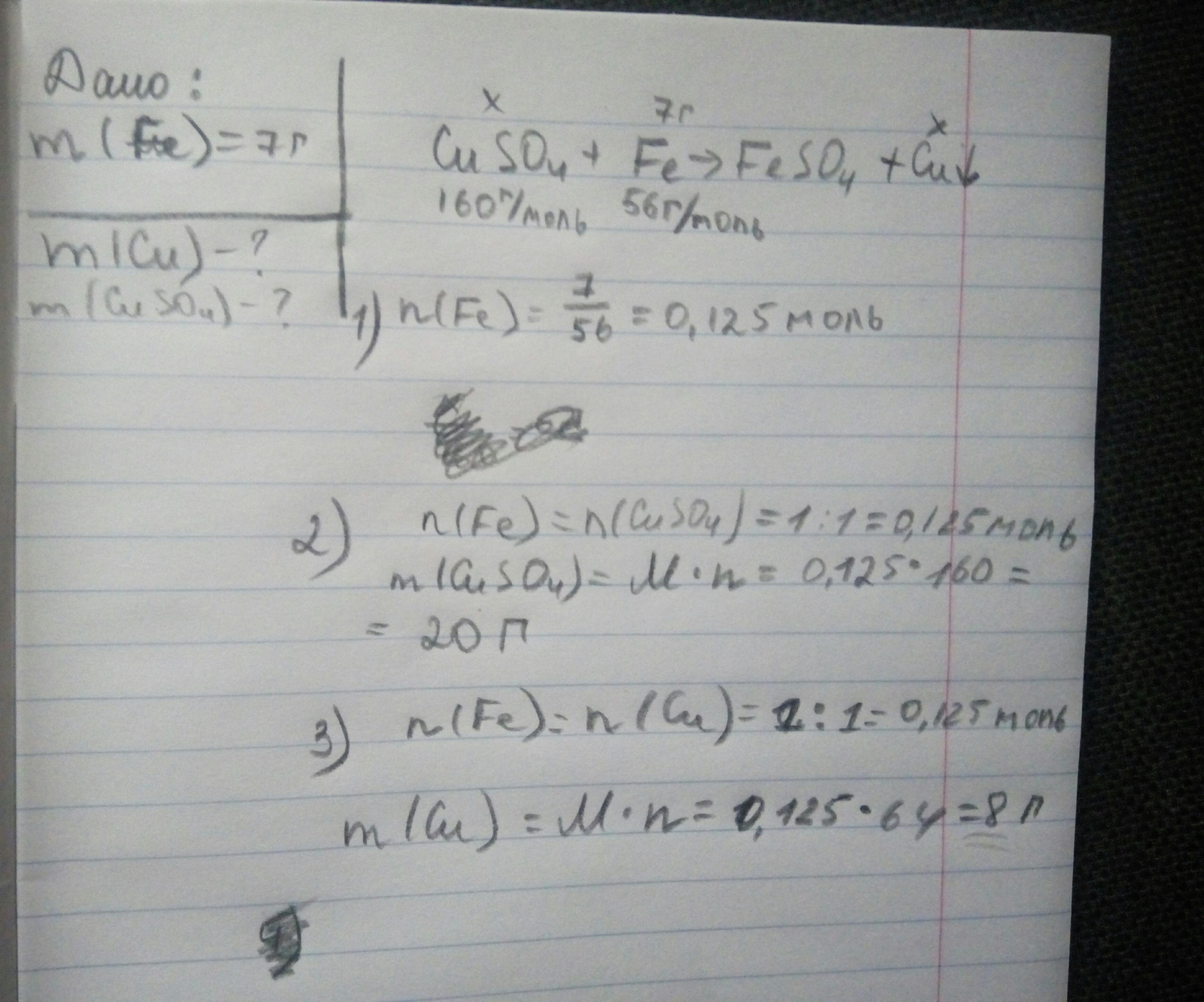 В ответе: m(CuSo4)=20 г, m(Cu)=8г