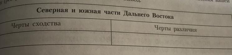 Южной частей Дальнего Востока. Заполните таблицу.