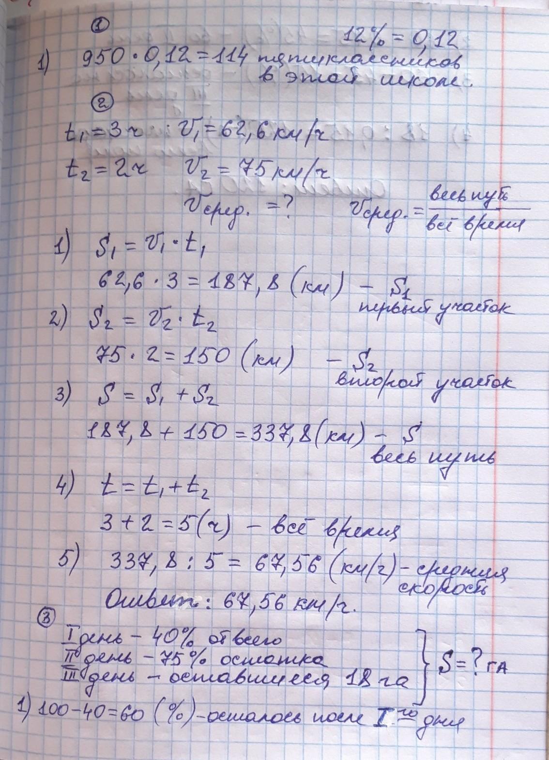 2. Автомобиль ехал 3 ч со скоростью 62,6 км/ч и 2 ч со