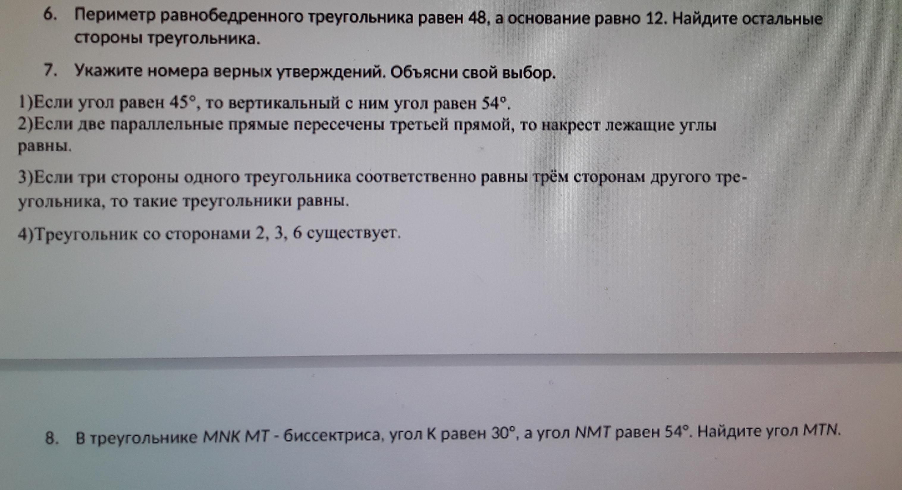 Решите номера 6,7,8. Номер 6 и номер 8 с чертежами пожалуйста. Срочно!!!! Завтра сдавать!!!! Даю 30 баллов!!!!