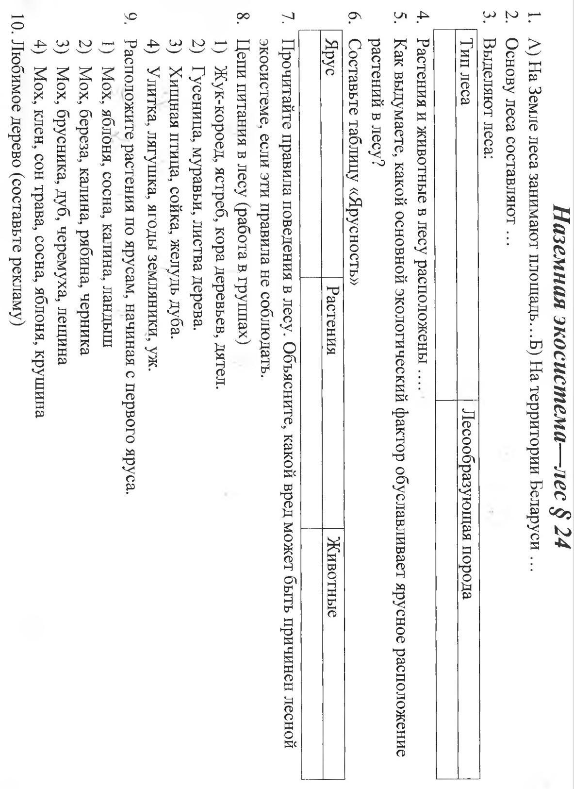 Большие деревья-ель, сосна, дуб-насекомые, птицы( в том числе хищные)