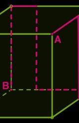 Муха ползает по поверхности куба вдоль красной линии от точки A к точке B.