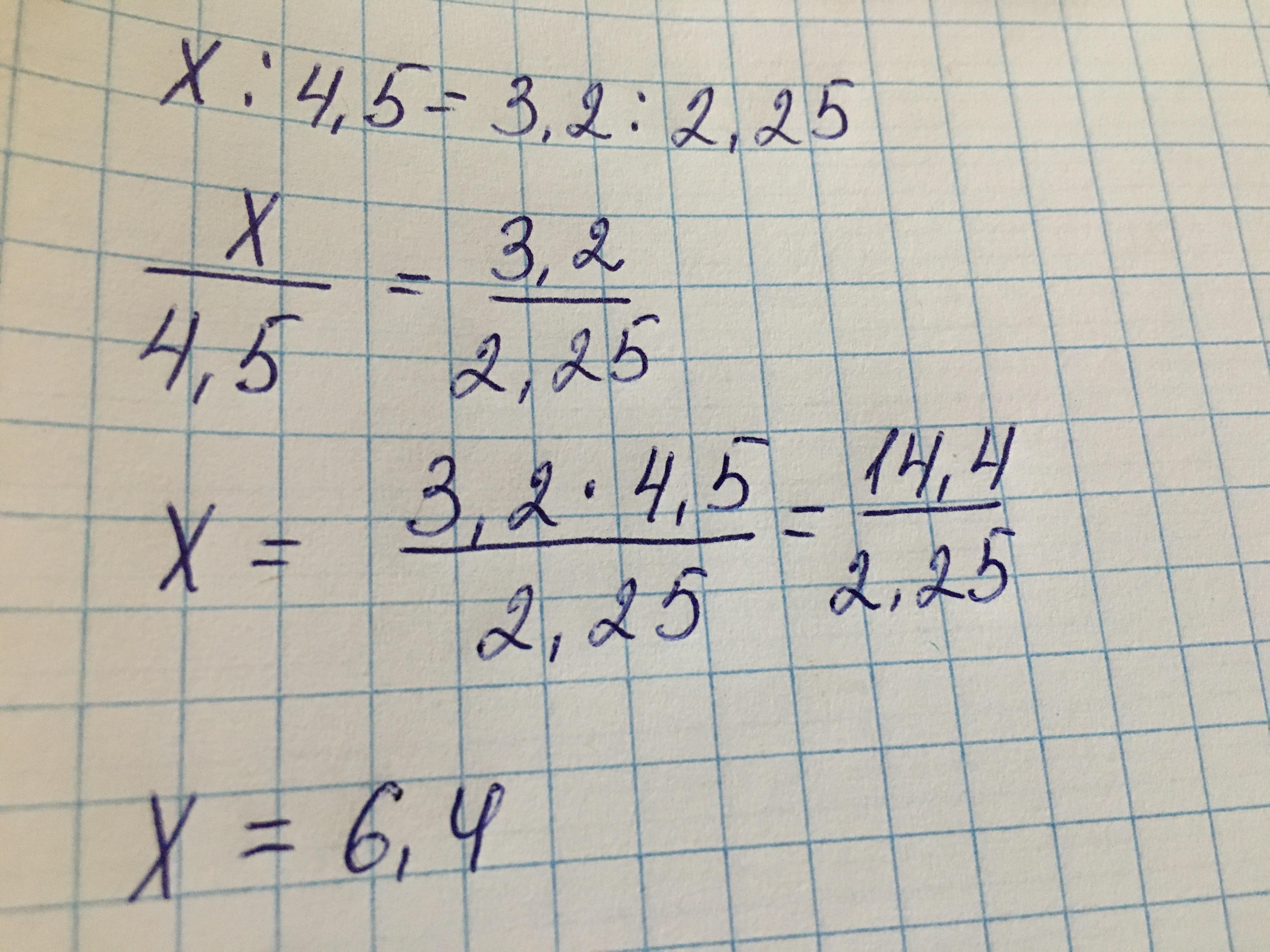 Найти неизвестный член пропорции х : 4,5 = 3,2 : 2,25......ПОМОГИТЕ ПОЖАЛУЙСТА СРОЧНОООООО,ДАЮ 15 БАЛЛОВ