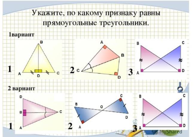 2)Угол AOB и COD равны(вертикальные углы),поэтому угол CDO равен углу ABO(так как 2 прямых угла и угол AOB равен углу COD). Равные углы AOB и COD и равные стороны AB и CD.