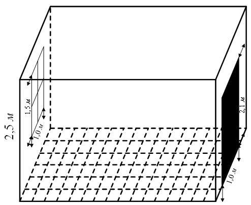 Светлана Петровна решила сделать ремонт в своей комнате. На чертеже она частично нанесла размеры комнаты и пол разбила на квадраты со стороной 0,5 м.