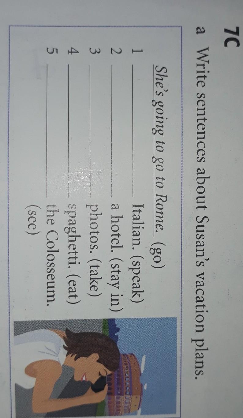 2 she is going to speak 3she is going to stay in a hotel 5 she is going to see 4