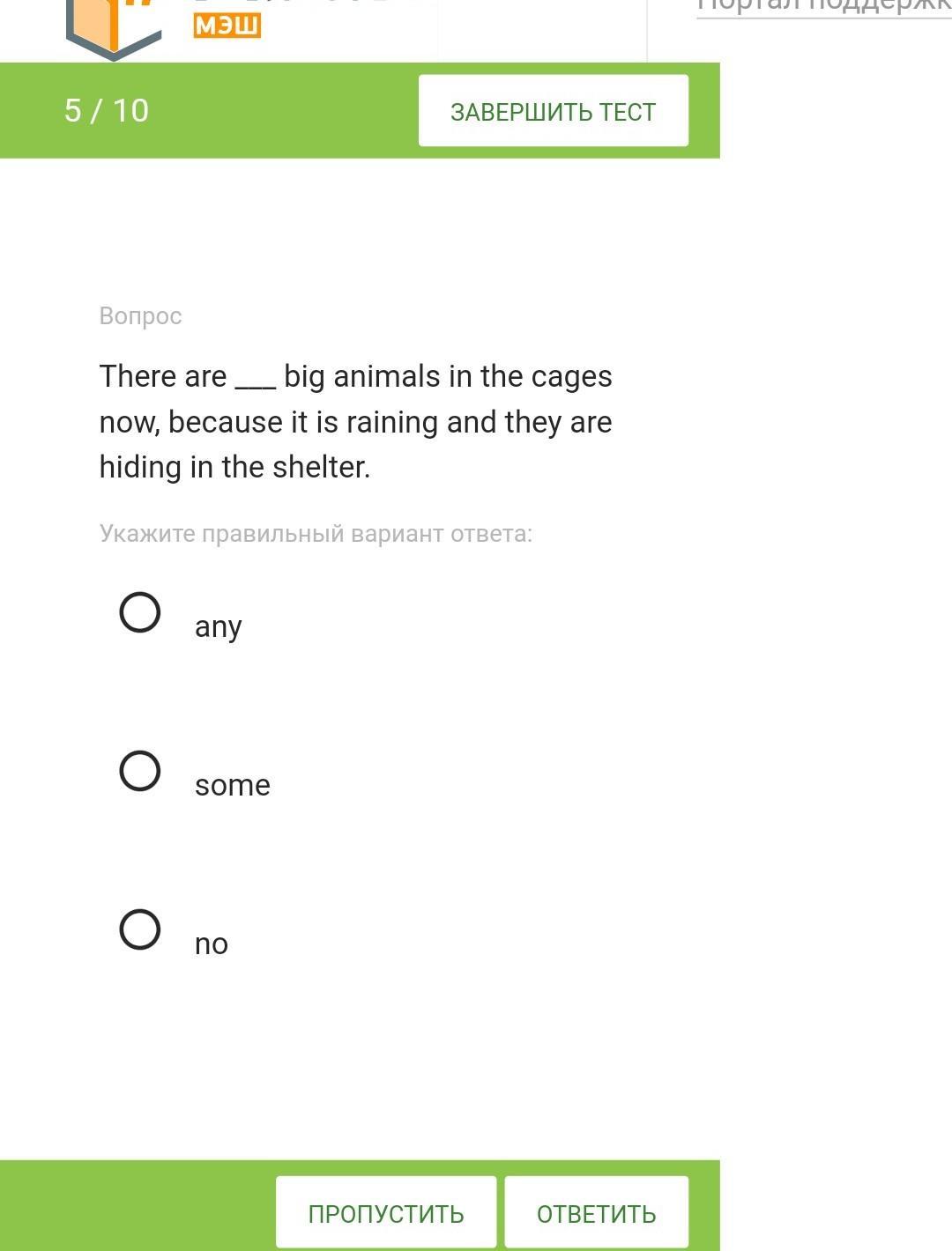 В клетках нет зверей, потому что идёт дождь, и они прячутся в убежищах. По смыслу подходит no. (Если бы было There aren't, то было бы any)