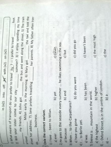 1 - on foot, 2 - in summer, 3 - with my friends, 4 - into the bus, 5 - in Milan, 6 - got off, 7 - with, 8 - on.