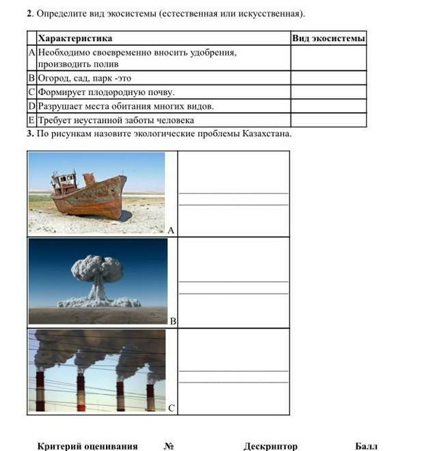 определите вид экосистемы и по рисункам назовите экологические проблемы Казахстана, срочно дам 20 баллов