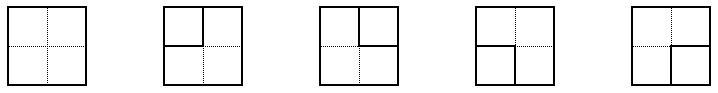 Квадрат 2×2 можно разрезать на маленький квадратик и уголок четырьмя способами. Все способы разрезания показаны на рисунке ниже.