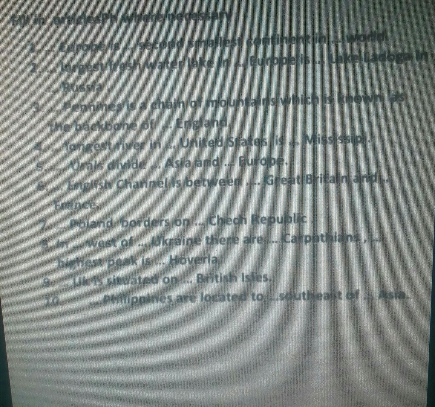 8. In - west of ... Ukraine there are ... Carpathians . .