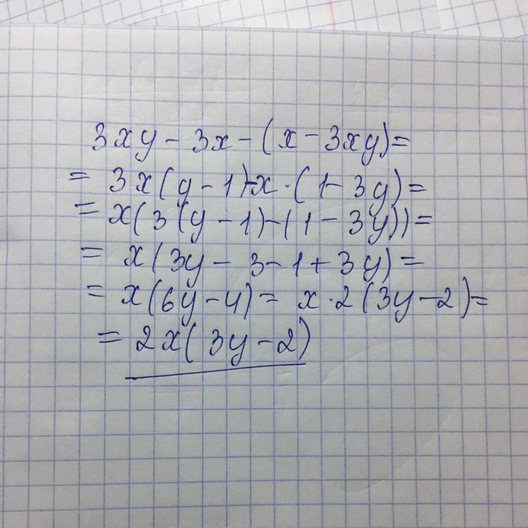 3xy-3x-(x-3xy)=3xy-3x-x+3xy=6xy-4x=2x(3y-2)
