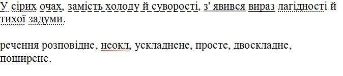 у сірих очах замість холоду і суворості з'явився вираз лагідності й тихої задуми .синтаксичний розбір