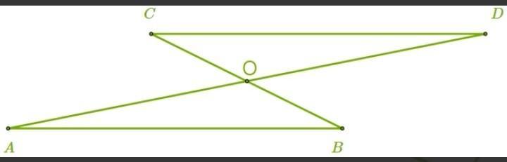 Угoл BOA равен углу CDOCODOCD как вертикальный угол.