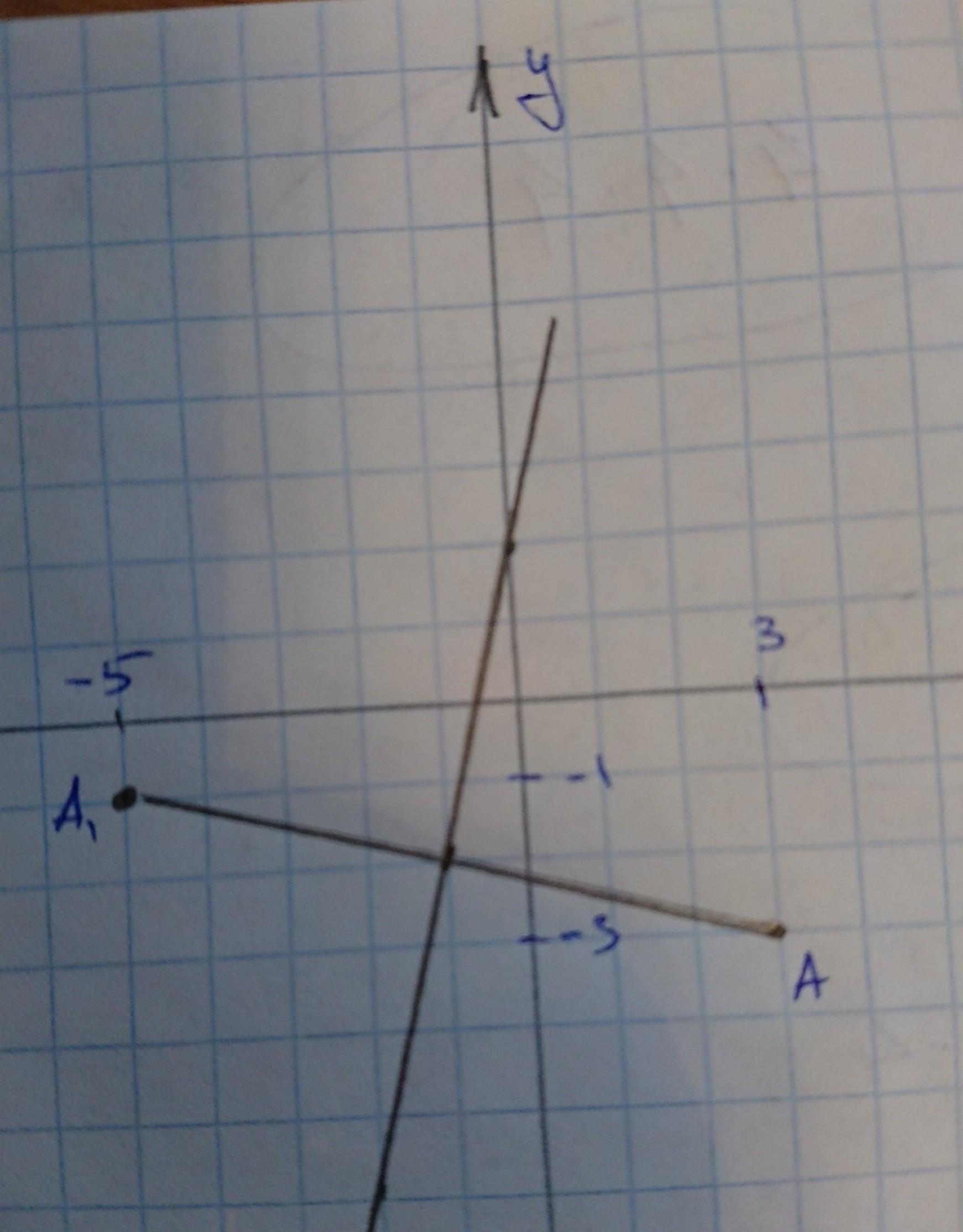 Искомая прямая должна проходить через середину отразка, соединяющего A1 и A. Это т. (-1; 2) => y = 4x + 2