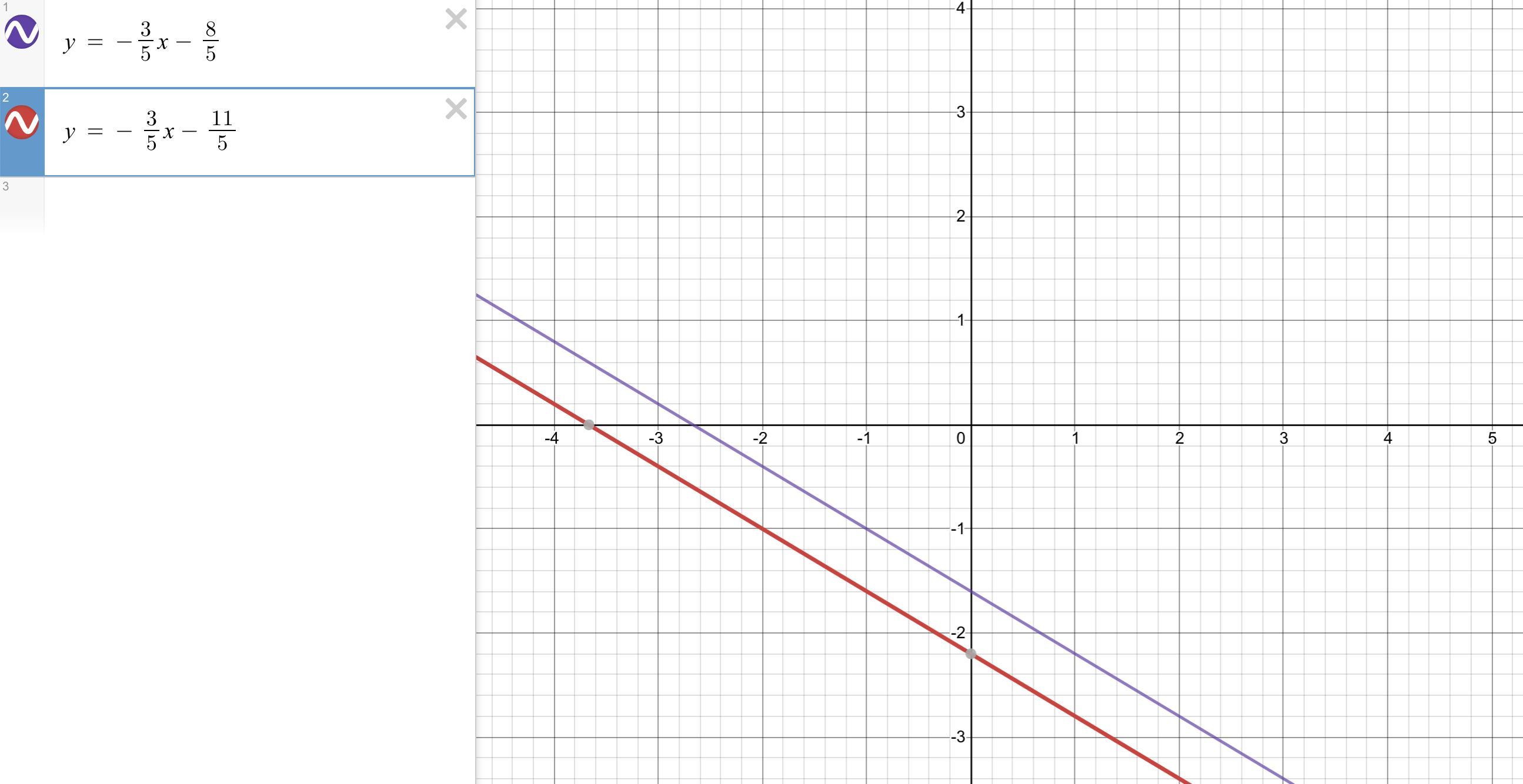 Легко видеть, что расстояние между прямыми это выстота прямоугольного треугольника с катетами a = 3 и b = 5. По т. Пифагора гипотенуза c = √34