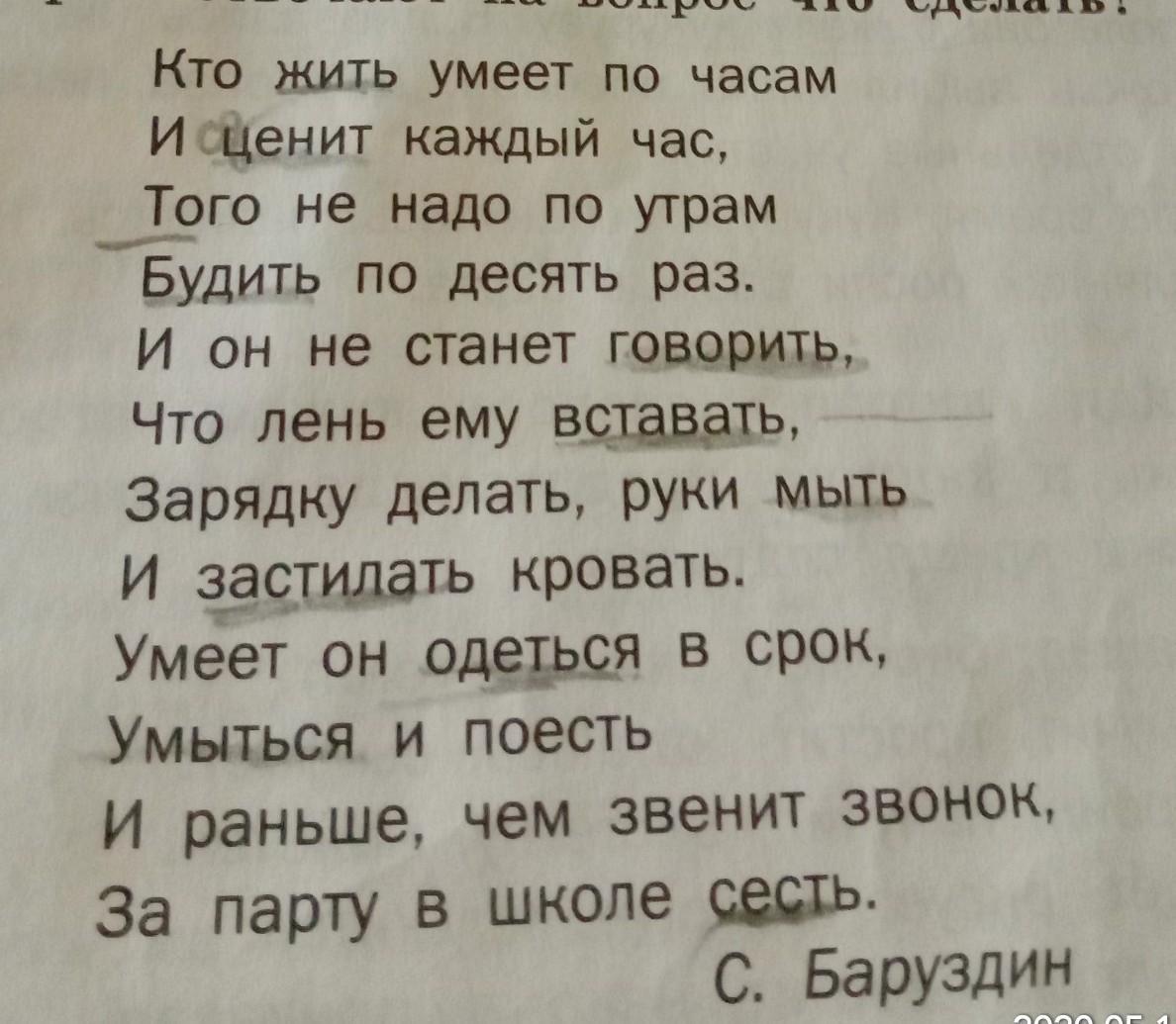 Жить; Будить; Говорить; Вставать; Застилать; Делать; Мыть