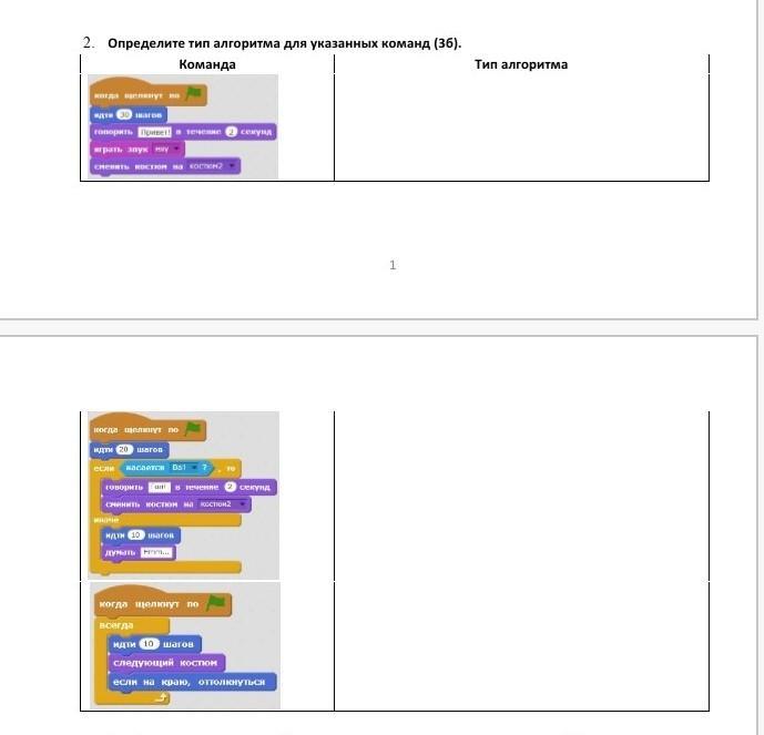 определите тип алгоритма для указаных Команд (3б) Команда​