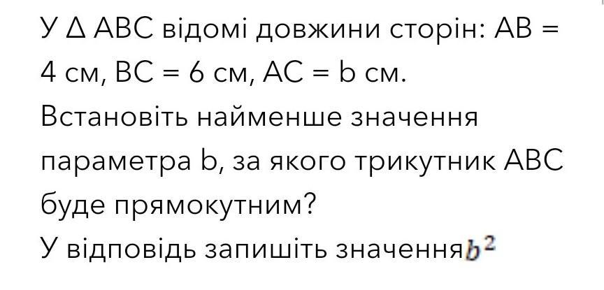 Встановіть найменше значення параметра b, за якого трикутник АВС буде прямокутним?