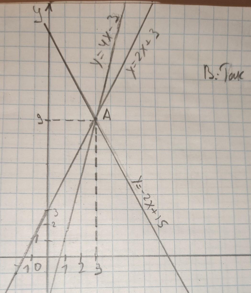Чи проходить графік функції у = 2х + 3 через точку перетину графіків функцій у = 4х – 3