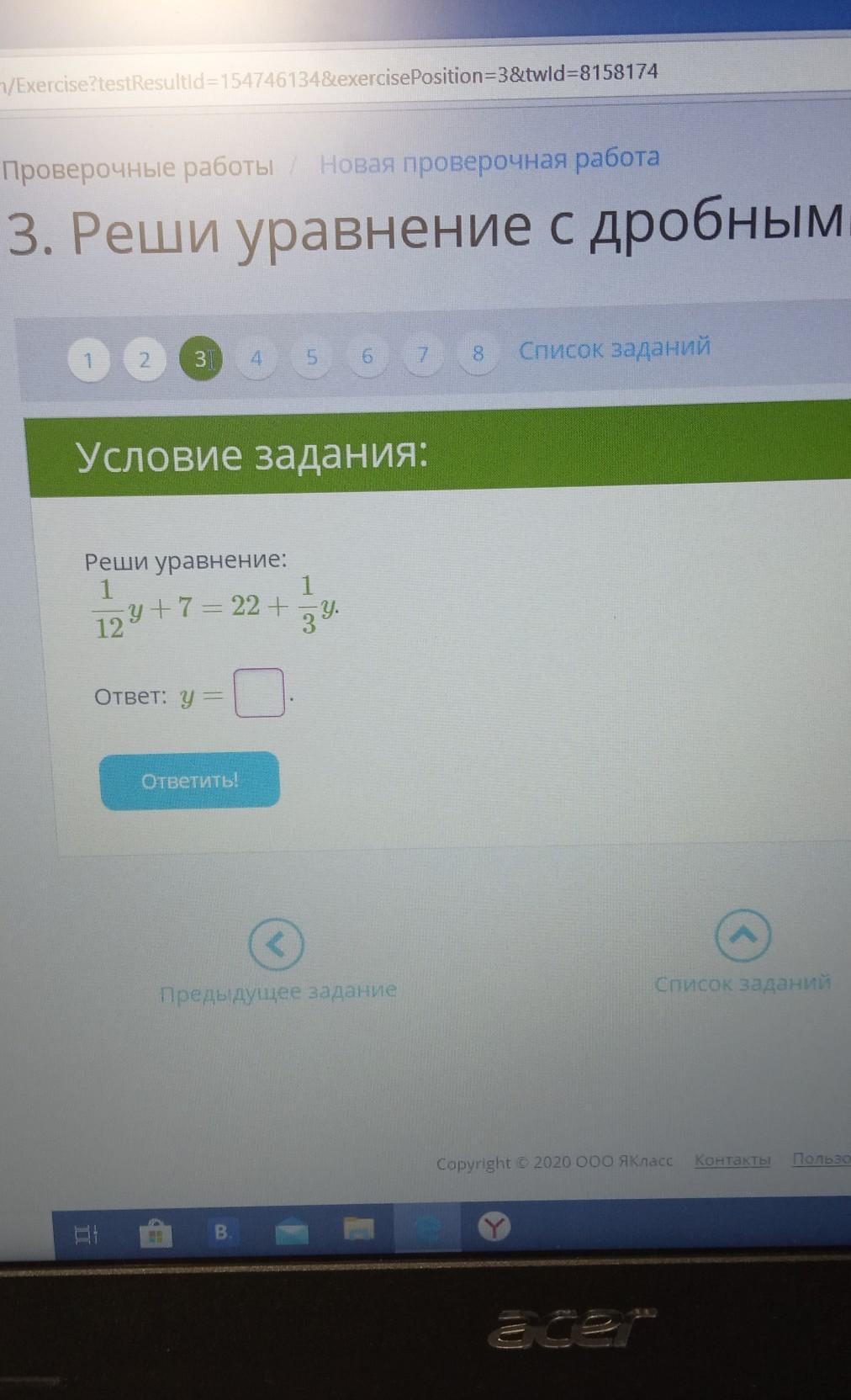1/12у - 1/3у = 22 - 7