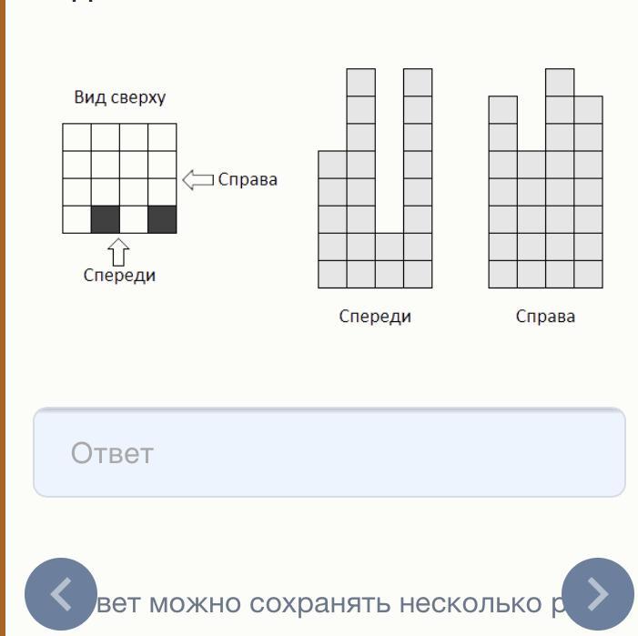 кубиков. Потом он нарисовал, как выглядит конструкция спереди и справа (если перед столбиком из 8