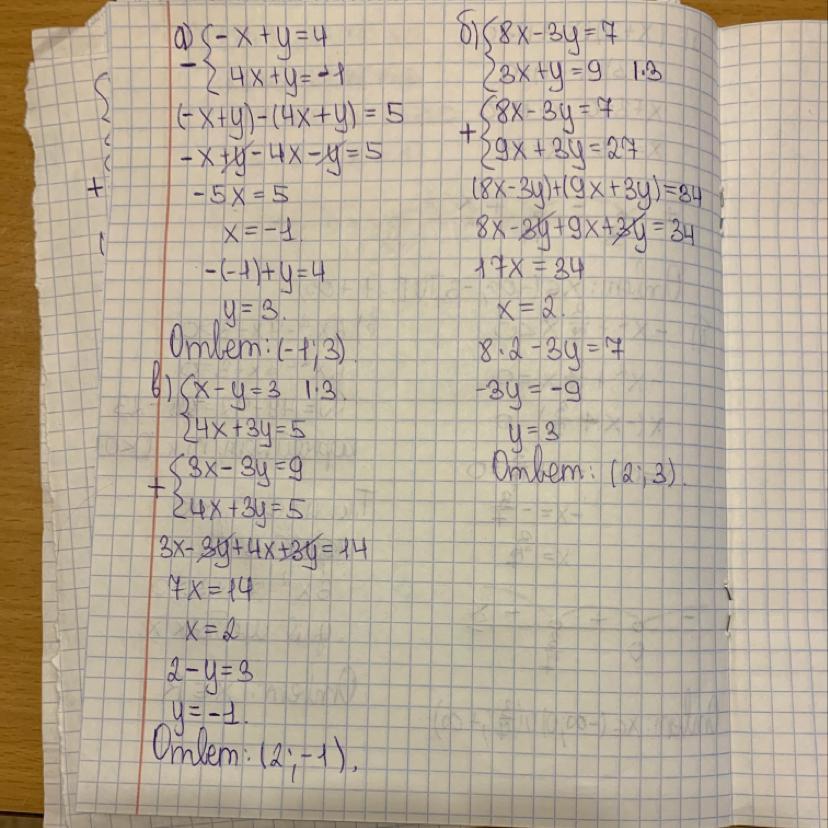 а)x=-1; y=3 б) x=2; y=3 в) x=2; y=-1