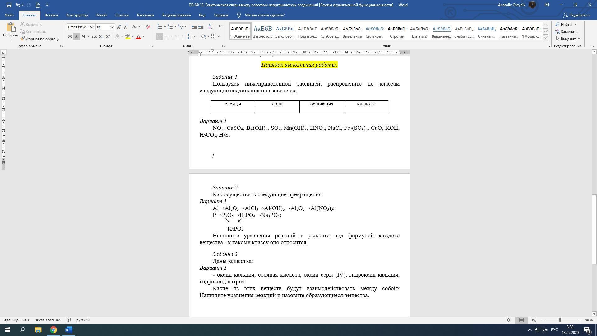 Пользуясь нижеприведенной таблицей, распределите по классам следующие соединения и назовите их: