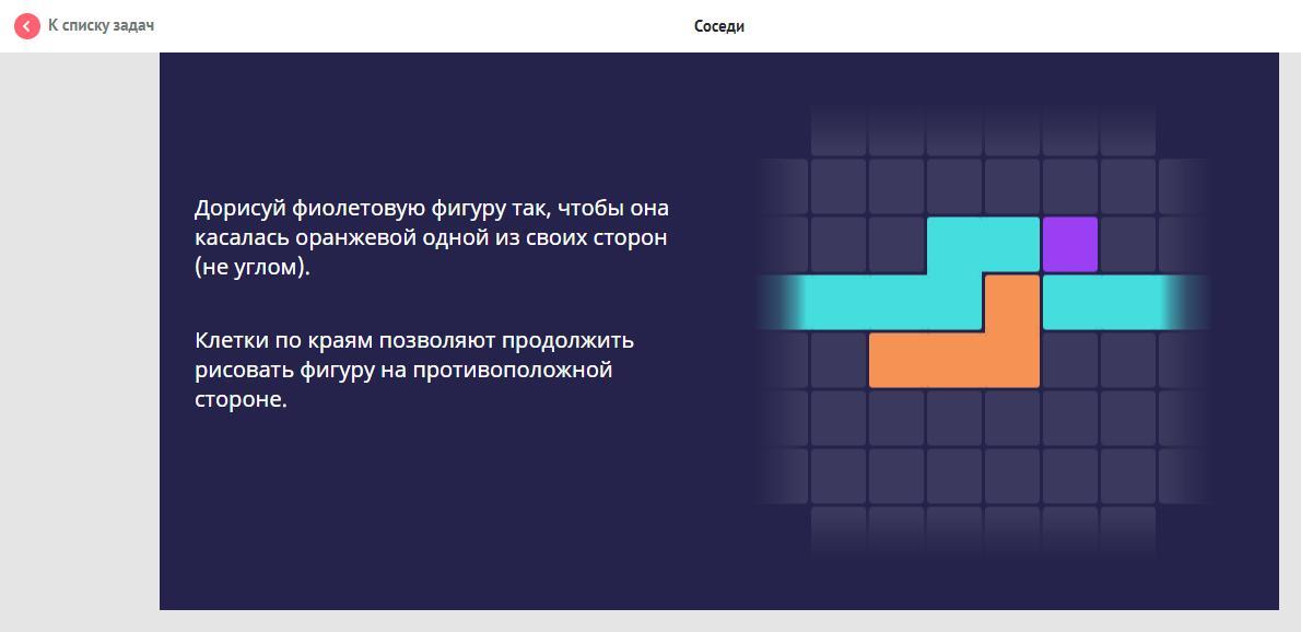 Если с другой стороны нет препятствий, можно фиолетовой фигурой дойти до нижней части первой стороны и прикоснуться к оранжевой