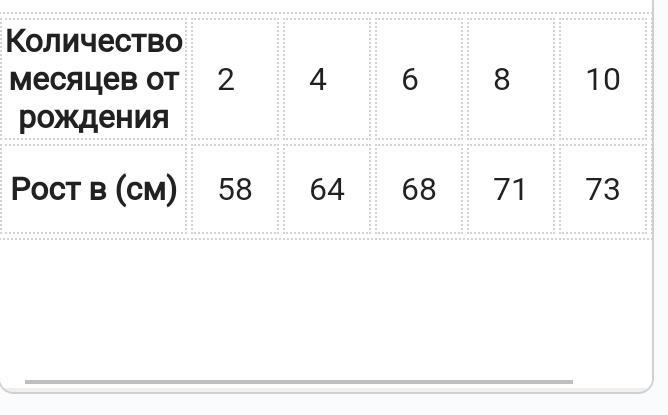 Построй график зависимости роста грудных детей от их возраста, воспользовавшись следующей таблицей (в таблице указан средний рост) второе фото это продолжение таблицы,немного просто не влезло.