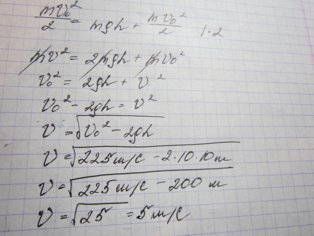 чему равна на высоте 10м скорость тела брошенного со скоростью 15 м/с под углом к горизонту? сопротивлением воздуха пренебречь