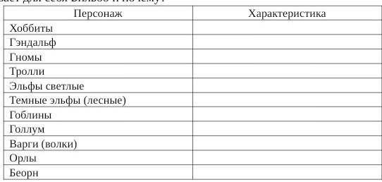 3. Работа по содержанию книги «Хоббит, или Туда и Обратно». Отвечая на вопросы, заполни таблицу. - У кого из персонажей книги был в кармане говорящий кошелек?