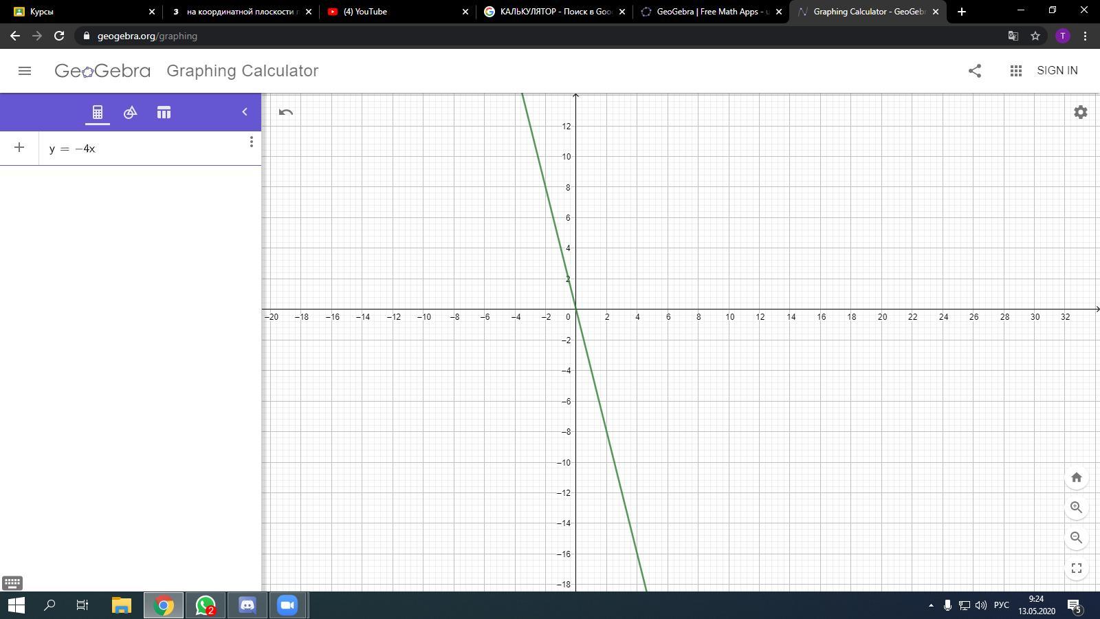 на координатной плоскости постройки график прямой пропорциональности у=-4х пожалуйста помогите срочно!!!!
