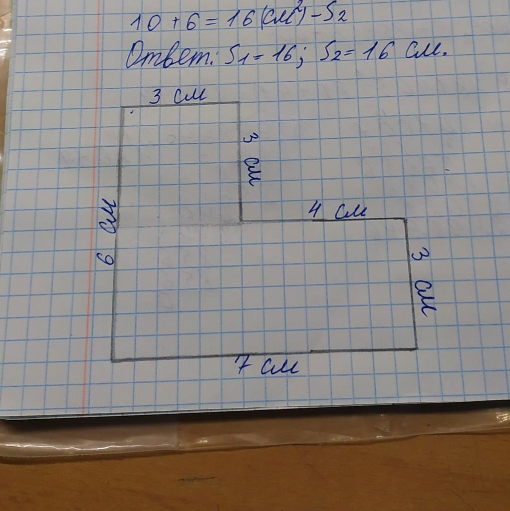 - Делишь фигуру на прямоугольник ( 7 и 7 и 3 и 3 см ) и квадрат ( 3 см )