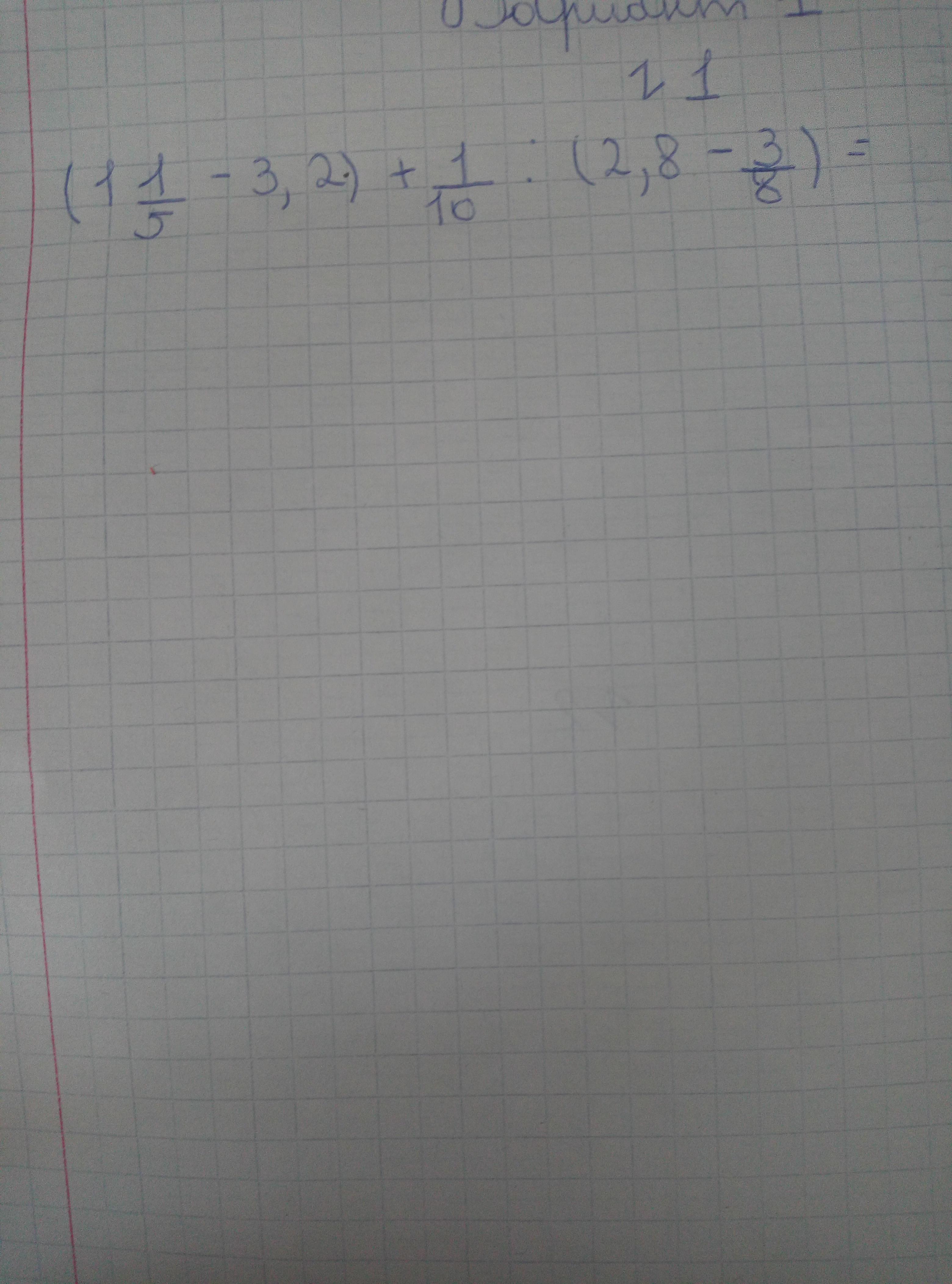 Ответ: 7 : (12/10 - 22/10) + 1/10 : (112/40 - 15/40) = 7 : (-1) + 1/10 : 97/40 = -7 + 4/97 = - 675/97 = - 6целых93/97