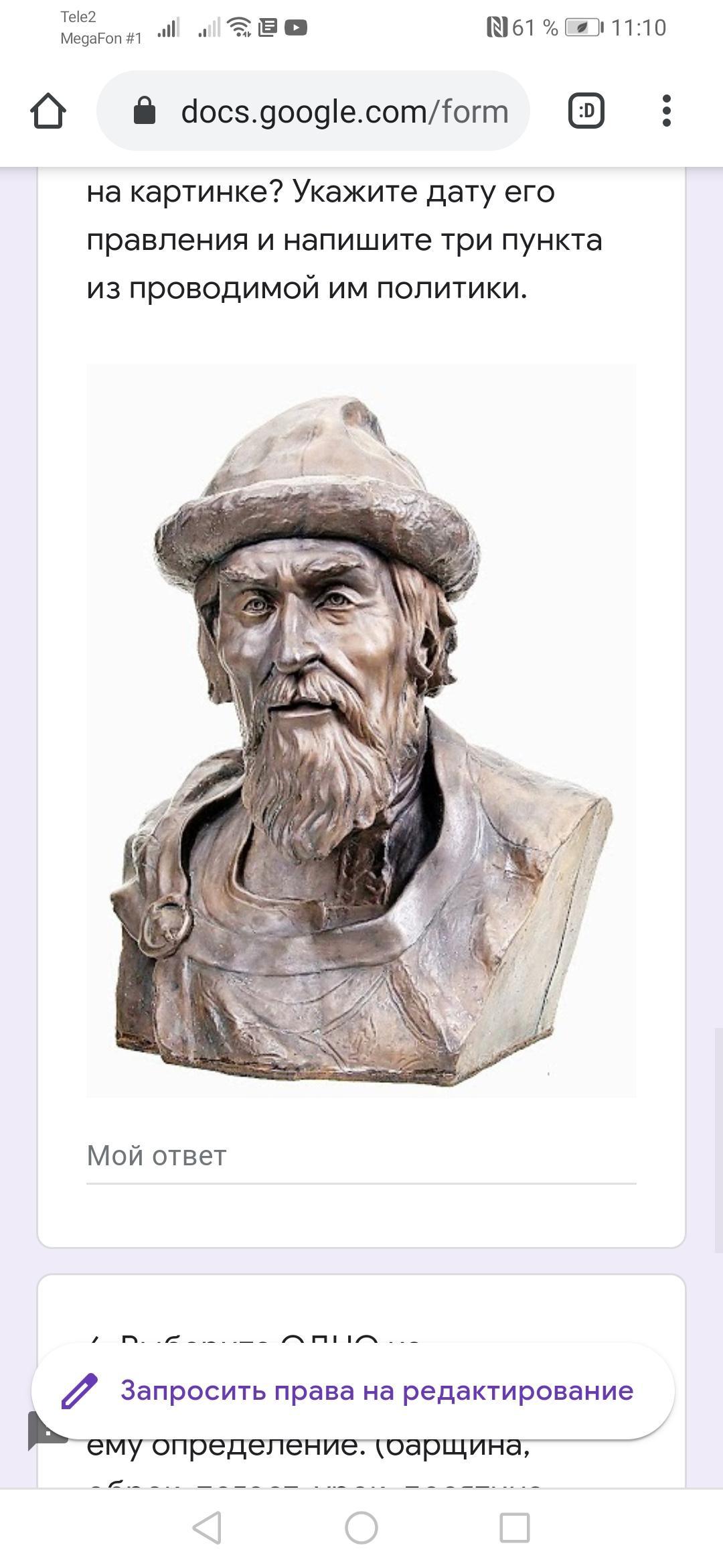 5. Какой правитель Руси изображен на картинке? Укажите дату его правления и напишите три пункта из проводимой им политики.