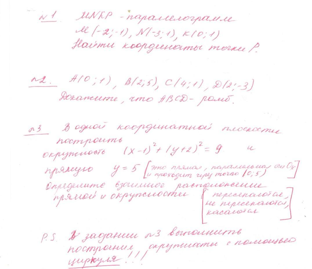 1) MNKP - параллелограмм. Диагонали MK и NP пересекаются и в точке пересечения, т. О, делятся пополам.Найдём координаты точки О как середины отрезка MK , а затем координаты точки Р, зная координаты т.N и координаты т.О .
