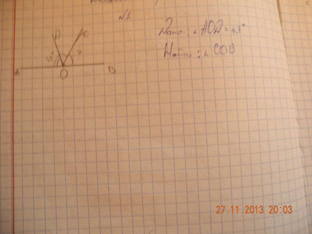 Ну вообще,если ОС биссектриса ДОВ,то весь АОВ=180 градусов,АОД=43,тогда ДОВ=190-43=137.Если ОС биссектриса,то СОВ=68,5. но по моему это неправильно,но я больше не вижу ничего