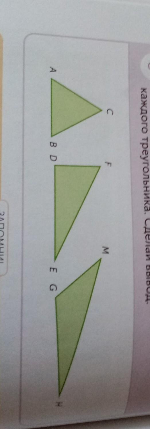 Измерьте углы в каждом треугольнике найдите сумму углов каждого треугольника Сделай вывод. 5 баллов