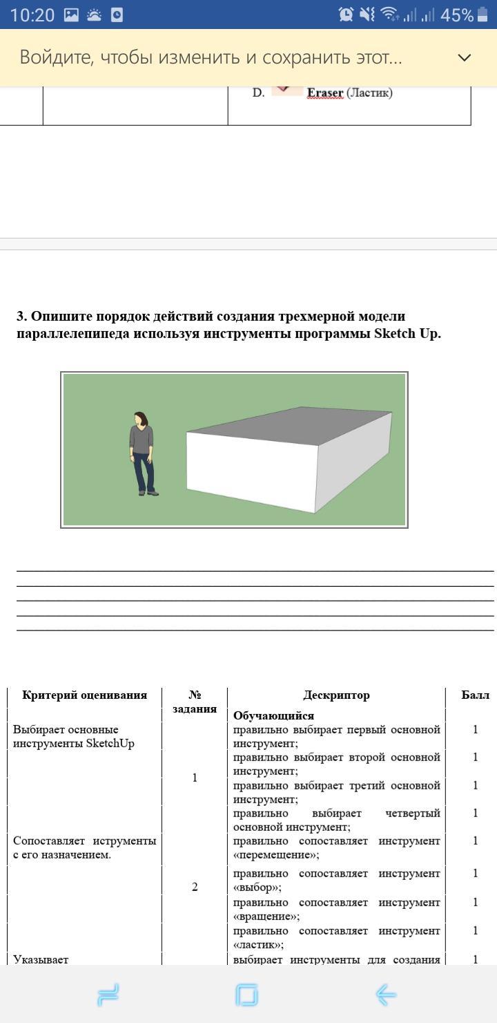Опишите порядок действий создания трехмерной модели параллелепипеда используя инструменты программы Sketch Up.